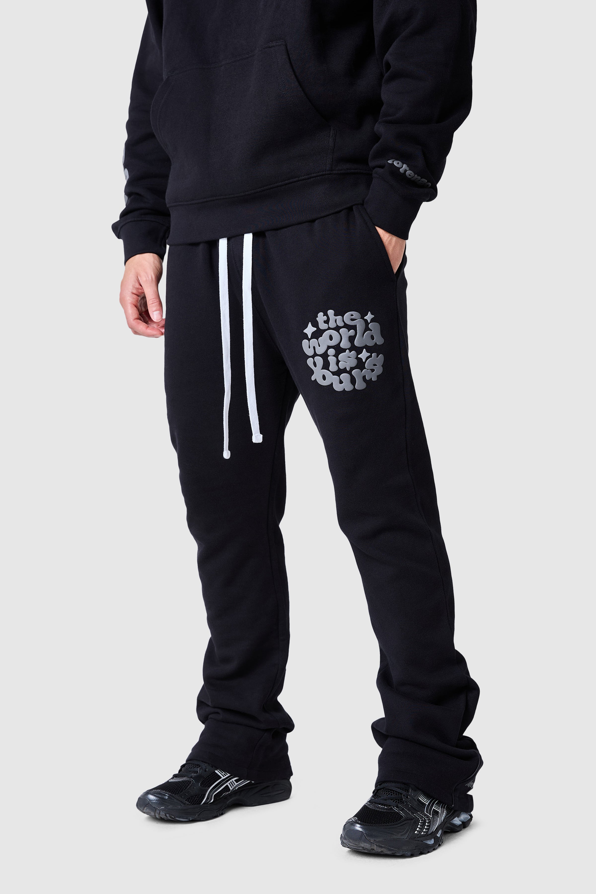 The World Is Yours Jogger 2.0 features a loose, flared fit with a bold graphic screen print, blending comfort and style effortlessly. Pair with the matching hood for a relaxed, complete look.