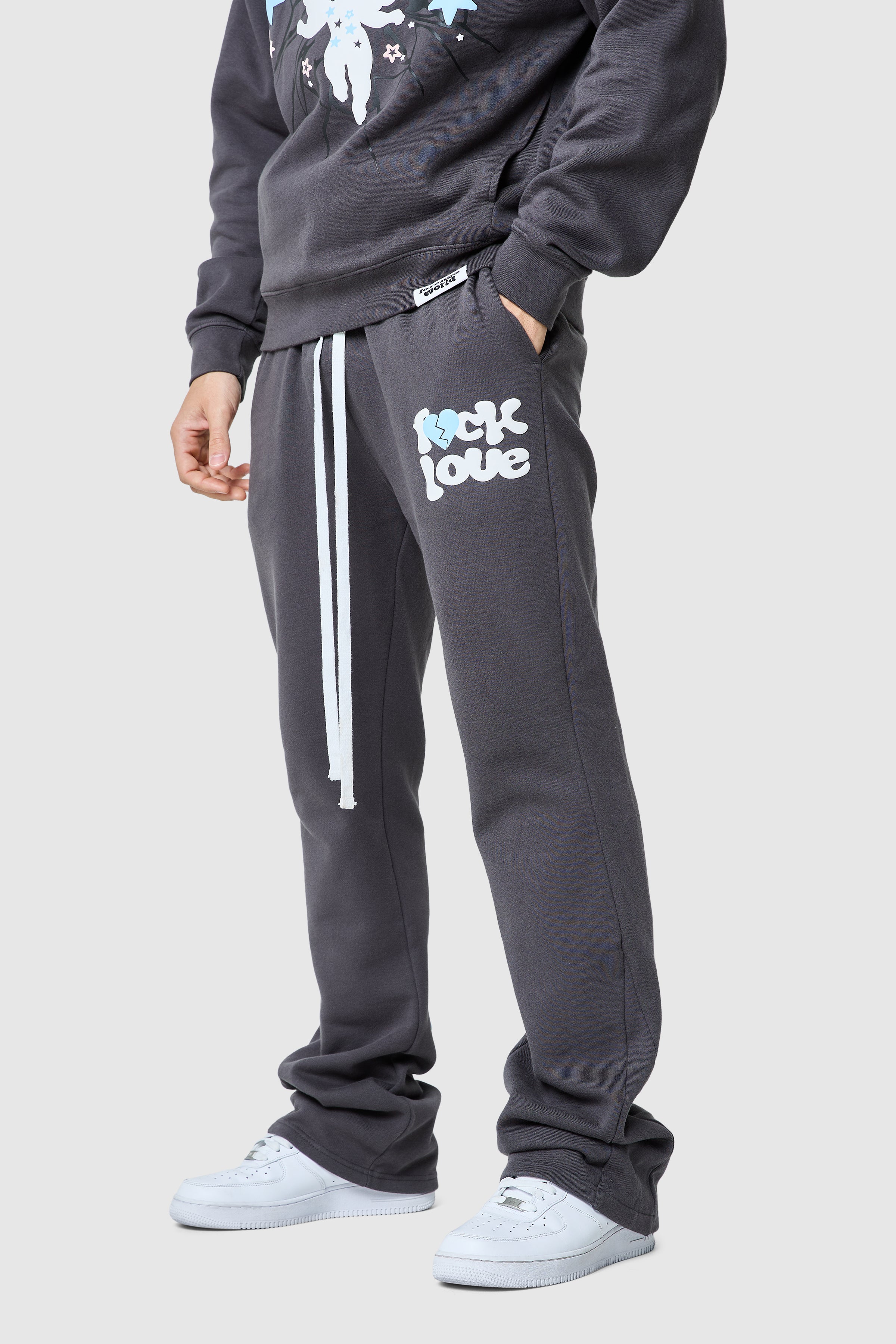 The Fxck Love Jogger features a wide leg fit with a bold new Lorenzo Fxck Love print. Pair with the matching hood for a relaxed, complete look.